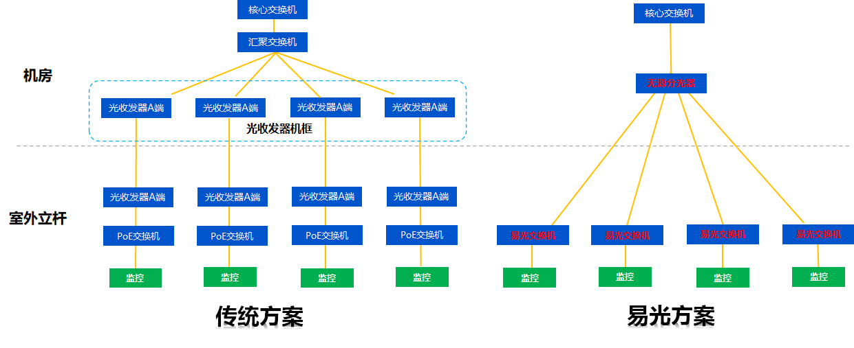2、相比光纖收發器方案,故障節點減少60%以上,大幅降低維護成本